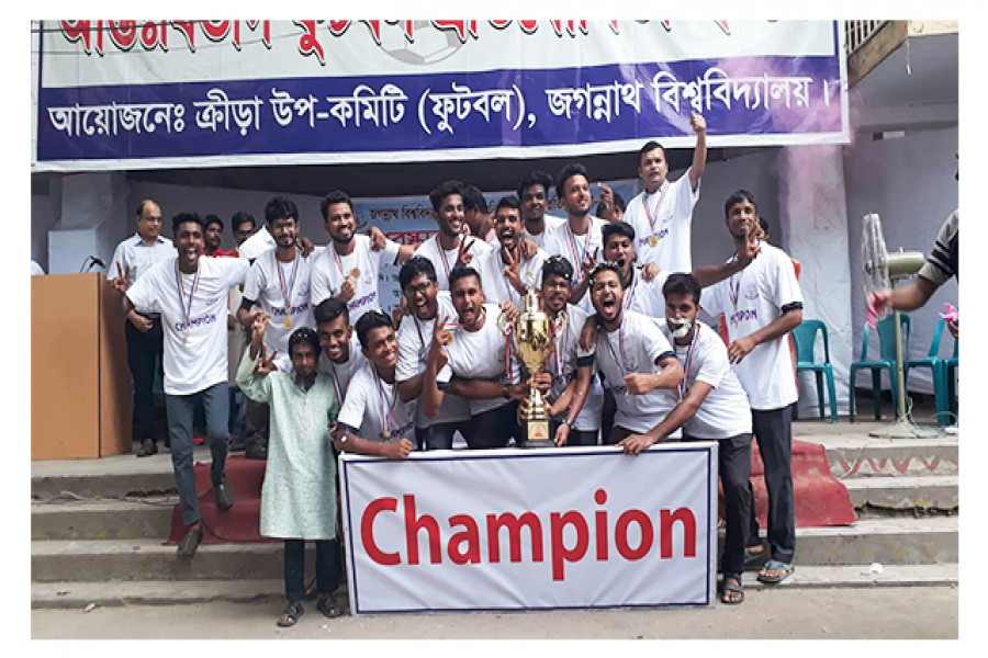 জগন্নাথ বিশ্ববিদ্যালয়ে (জবি) ৫ম আন্তঃবিভাগ ফুটব‌ল প্র‌তি‌যো‌গিতার পুরস্কার বিতরণী অনুষ্ঠিত হ‌য়ে‌ছে। প্র‌তিযো‌গিতায় চ্যাম্পিয়ন হয়েছে ভূ‌গোল ও প‌রি‌বেশ বিভাগ এবং রানার্সআপ হয় অর্থনীতি বিভাগ।