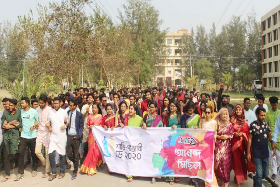 এবার শাড়ি-পাঞ্জাবিতে মাতল নোবিপ্রবি শিক্ষার্থীরা