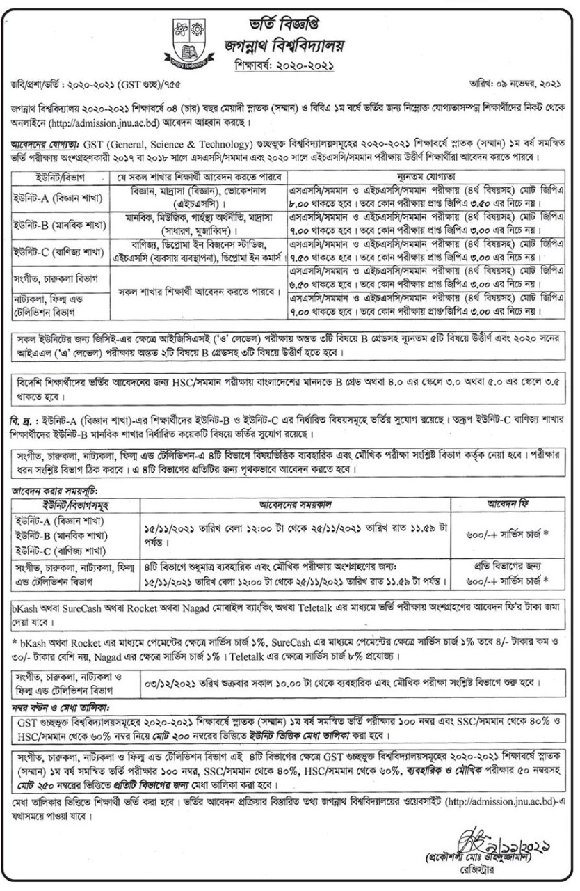 ২০টি সাধারণ এবং বিজ্ঞান ও প্রযুক্তি বিশ্ববিদ্যালয়ের গুচ্ছভুক্ত ভর্তি পরীক্ষায় ফলাফলপ্রাপ্ত শিক্ষার্থীদের জগন্নাথ বিশ্ববিদ্যালয়ে (জবি) প্রথম বর্ষে ভর্তির আবেদন আগামী ১৫ নভেম্বর থেকে শুরু হচ্ছে। প্রতি ইউনিটের জন্য আবেদন ফি নির্ধারণ করা হয়েছে ৬০০ টাকা। আগামী ২৫ নভেম্বর পর্যন্ত আবেদন করা যাবে।