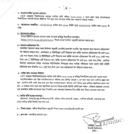 কুষ্টিয়ার ইসলামীক বিশ্ববিদ্যালয়ে ২০২০-২১ শিক্ষাবর্ষে ভর্তি বিজ্ঞপ্তি প্রকাশ করা হয়েছে। বিজ্ঞপ্তি অনুযায়ী ‘বি’ ইউনিটের আবেদন প্রক্রিয়ার ফি ৮০০ টাকা নির্ধারণ করা হয়েছে।