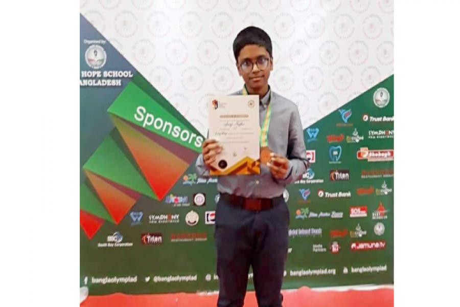অলিম্পিয়াড প্রতিযোগিতায় রচনা বিভাগে তৃতীয় হয়েছে ইংরেজি মাধ্যম স্কুলের গ্রেড সেভেনের শিক্ষার্থী অন্বয়। ঢাকার ৯৯টি শিক্ষাপ্রতিষ্ঠানের প্রায় দুই হাজার শিক্ষার্থীদের মধ্যে তৃতীয় হয় সে।