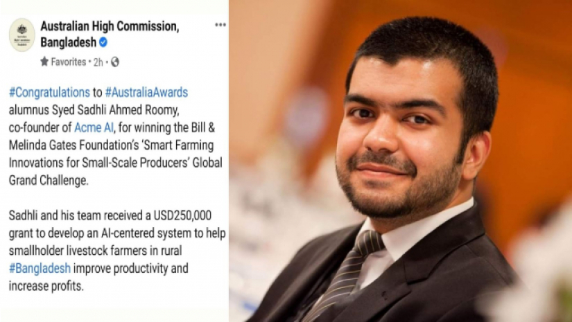 ‘স্মার্ট ফার্মিং ইনোভেশন ফর স্মল-স্কেল প্রডিউসারস’ এর গ্লোবাল গ্র্যান্ড চ্যালেঞ্জ জিতেছে বাংলাদেশী গবেষক সৈয়দ সাধলী আহমেদ রুমী। সম্প্রতি বিল অ্যান্ড মেলিন্ডা গেটস ফাউন্ডেশনের দেওয়া এই সম্মানজনক অনুদান পান তিনি।