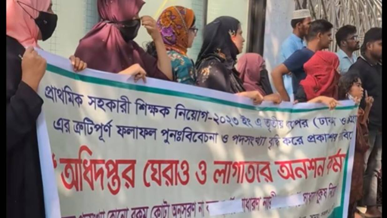 সরকারি প্রাথমিক বিদ্যালয়ের সহকারী শিক্ষক নিয়োগের তৃতীয় ধাপের চূড়ান্ত ফল প্রকাশের পর অসন্তোষ প্রকাশ করেছেন চাকরিপ্রার্থীরা। তারা এই ফল ত্রুটিপূর্ণ উল্লেখ করে পুনরায় প্রকাশের দাবিতে প্রাথমিক শিক্ষা অধিদপ্তর ঘেরাও করে লাগাতার অনশন কর্মসূচি পালন করা হচ্ছে। আজ রবিবার সকাল থেকে রাজধানীর মিরপুরস্থ অধিদপ্তরের সামনে এই কর্মসূচি পালন করছেন তারা।