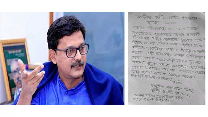 মোমিনুল ইসলাম বলেন, ‘মিশু দিনাজপুরের ডিসিকে উদ্দেশ্য করে চিঠিটি লিখেছে মিশু। আজ নৌ পরিবহন প্রতিমন্ত্রী খালিদ মাহমুদ চৌধুরী ফোন দিয়েছেন। তিনি মিশুর সঙ্গে কথা বলেছেন। মন্ত্রী বলেছেন, আমি এক্ষুনি ডিসি সাহেবকে বলে দিচ্ছি, তিনি ইট ভাটা সরানোর ব্যবস্থা করছেন।’
