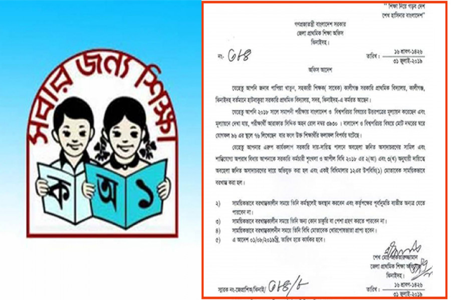 এর আগে চতুর্থ শ্রেণীর শিক্ষার্থীরা সাবলীলভাবে ইংরেজি পড়তে না পাড়ার অজুহাতে ঝিনাইদহের মহেশপুর উপজেলার ভালাইপুর সরকারি প্রাথমিক বিদ্যালয়ের ইংরেজি শিক্ষক নার্গিস সুলতানা ছবিকে সাময়িক বরখাস্ত করায় প্রতিবাদের ঝড় উঠেছে। তবে তাকে বরখাস্ত করে জারি করা চিঠির ২২ জায়গায় ভুল করেছেন খোদ জেলা প্রাথমিক শিক্ষা কর্মকর্তা শেখ মো. আক্তারুজ্জামান।