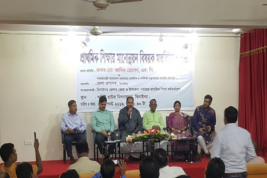 প্রাথমিক শিক্ষার সঙ্গে জড়িত শিক্ষক-কর্মচারীদের বঙ্গবন্ধুর আদর্শে উজ্জীবিত হয়ে দিনে কমপক্ষে ২ ঘন্টা জাতির জন্য ব্যয় করার নির্দেশনা দিয়েছেন প্রাথমিক ও গণশিক্ষা প্রতিমন্ত্রী মোঃ জাকির হোসেন। সোমবার সন্ধ্যায় ঝিনাইদহ জেলার সার্কিট হাউসে অনুষ্ঠিত প্রাথমিক শিক্ষার মানোন্নয়ন বিষয়ক মতবিনিময় সভায় তিনি এ কথা বলেন।