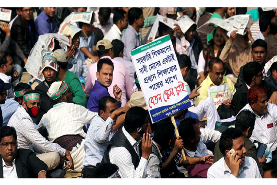 সরকারি প্রাথমিক বিদ্যালয়ের সহকারী শিক্ষকদের বেতন ১৩তম গ্রেডে উন্নীতকরণের প্রস্তাব এবং অর্থ মন্ত্রণালয়ের সম্মতিপত্র প্রত্যাখ্যান করেছে প্রাথমিক সহকারী শিক্ষক মহাজোটের নেতারা। ওই প্রস্তাব বাদ দিয়ে সহকারী শিক্ষকদের বেতন ১১ তম গ্রেডে নির্ধারণ করার দাবি জানিয়েছেন তারা।