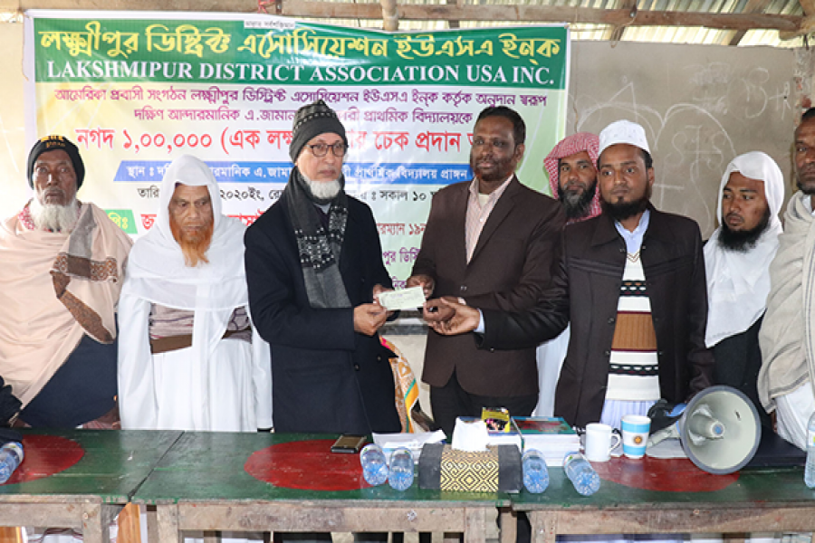 লক্ষ্মীপুর সদর উপজেলার দক্ষিণ আন্দারমানিক এ.জামান বেসরকারি প্রাথমিক বিদ্যালয়ের উন্নয়নে এক লাখ টাকা অনুদান দিয়েছে আমেরিকা প্রবাসীদের সংগঠন লক্ষ্মীপুর ডিস্ট্রিক্ট অ্যাসোসিয়েশন ইউএসএ ইনক। রোববার (১২ জানুয়ারি) দুপুরে বিদ্যালয় প্রাঙ্গণে আনুষ্ঠানিকভাবে অনুদানের চেকটি হস্তান্তর করেন সংগঠনটির সহ-সভাপতি মোহাম্মদ নুর নবী। একই সঙ্গে বিদ্যালয়টির ছাত্র-ছাত্রীদের মাঝে বিনামূল্যে স্কুল ব্যাগ, খাতা ও কলম বিতরণ করা হয়।