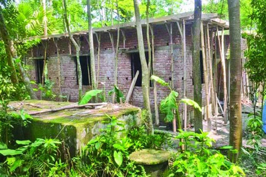 করোনার বন্ধে প্রাথমিক বিদ্যালয়ের জমিতে বসতবাড়ি নির্মাণ