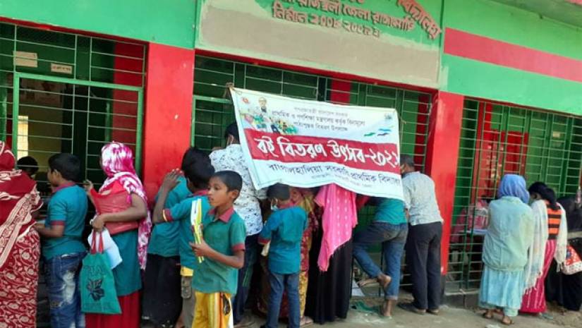 রাঙ্গামাটিতে নতুন বই বিতরণে নেই স্বাস্থ্যবিধির বালাই