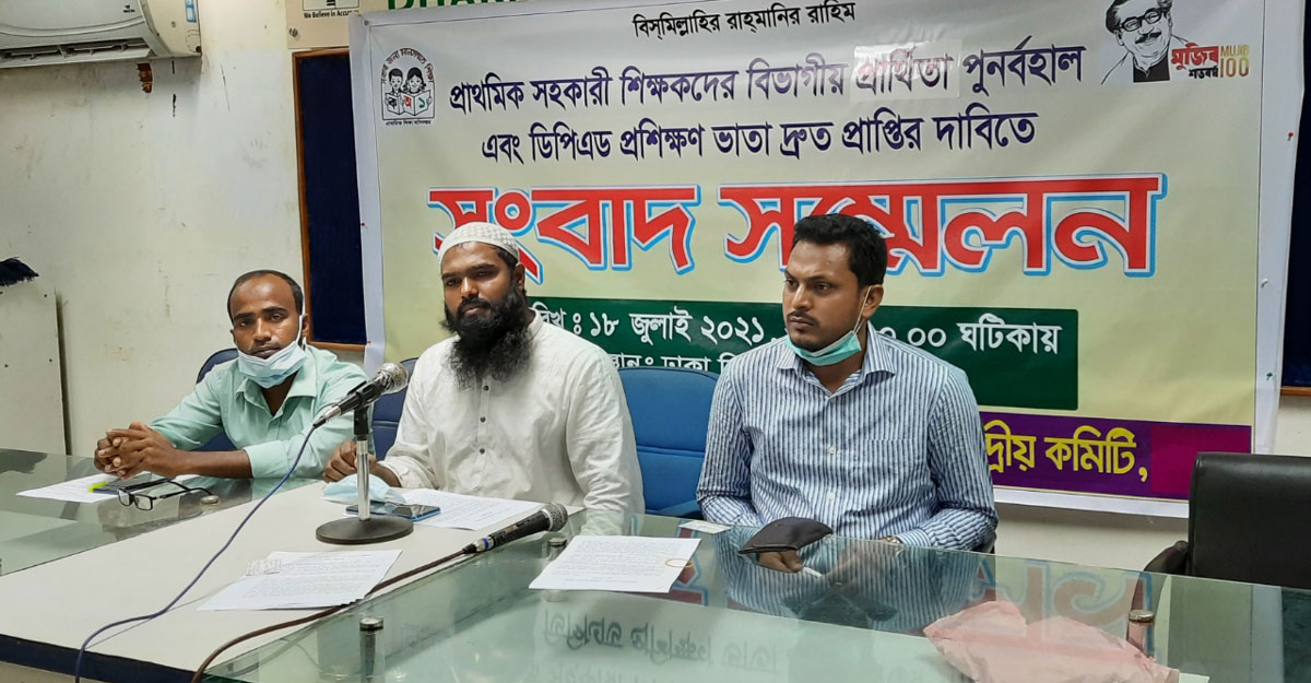 সংবাদ সম্মেলনে আরও উপস্থিত ছিলেন বাংলাদেশ প্রাথমিক সহকারী শিক্ষক পরিষদের সভাপতি মো. মোজাম্মেল হোসেন, সাধারণ সম্পাদক মো. রবিউল আউয়াল, যুগ্ম সাধারণ সম্পাদক মো. আবু তাহের প্রমুখ।