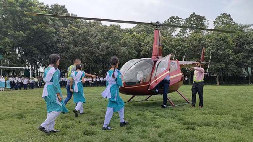এসএসসি পরীক্ষায় ভালো ফল করায় হেলিকপ্টারে সংবর্ধনা