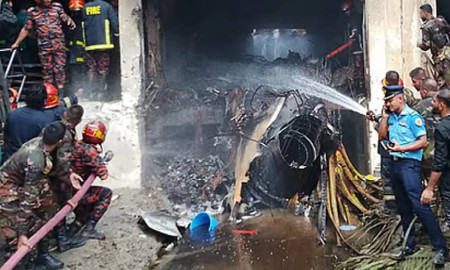 রাজধানীর উত্তরা মাইলস্টোন স্কুল অ্যান্ড কলেজে বাংলাদেশ বিমানবাহিনীর এফ-৭ বিজিআই প্রশিক্ষণ বিমান বিধ্বস্ত হয়েছে। এ দুর্ঘটনায় পাইলটসহ ১৮জন নিহত হয়েছেন। এতে দগ্ধ হয়েছেন আরও ১৬৪ জন। ...