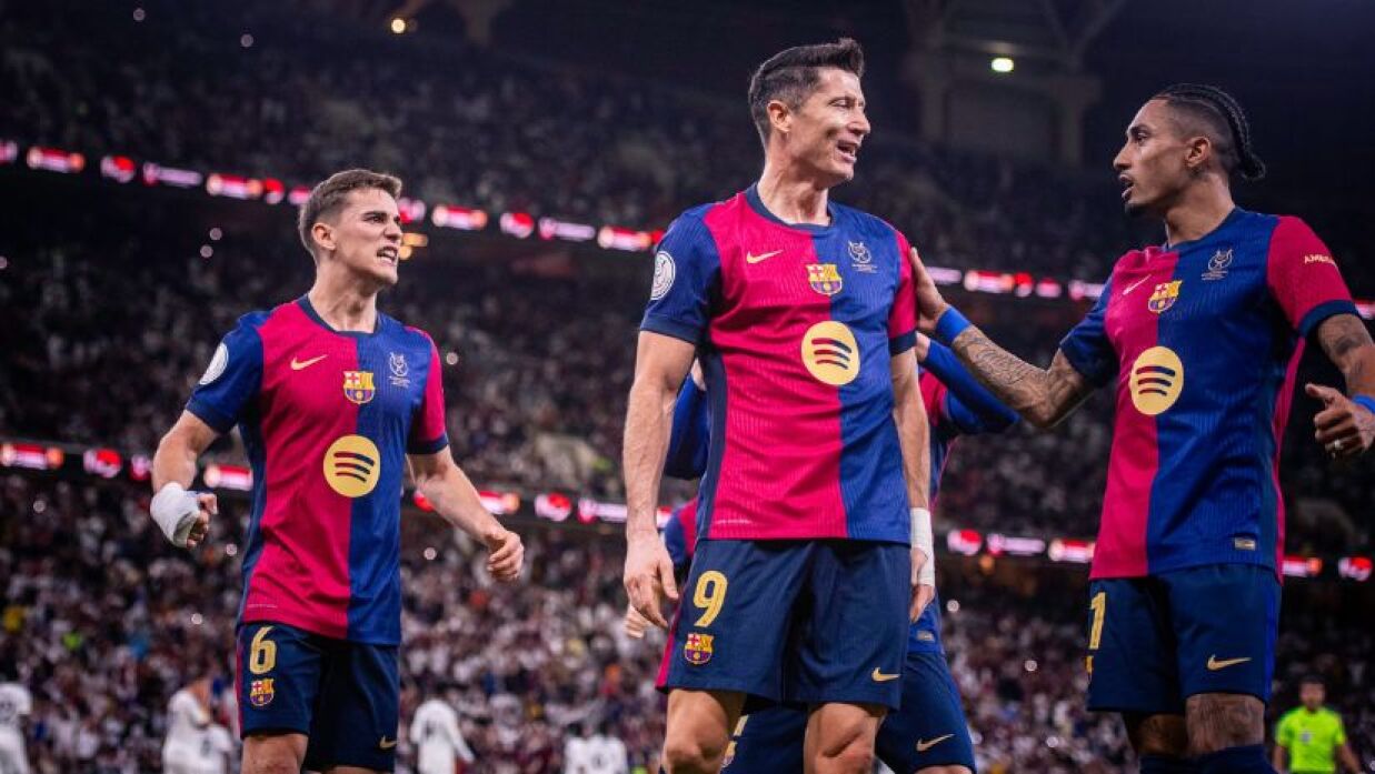 সৌদি আরবের কিং আবদুল্লাহ স্পোর্টস সিটিতে রবিবার বাংলাদেশ সময় রাত ১টায় শুরু হওয়া এই ম্যাচের প্রথমার্ধে রিয়াল মাদ্রিদের জালে এক হালি গোল দিল হ্যান্সি ফ্লিকের বার্সা। বিপরীতে রিয়ালের হয়ে ম্যাচের ৫ মিনিটের একটি গোল করেছেন কিলিয়ান এমবাপ। অন্যদিকে, বার্সেলোনার পক্ষে গোল করে লামিনে ইয়ামাল, রবের্ত লেভানদোভস্কি, রাফিনহা ও আলেজান্দ্রো।