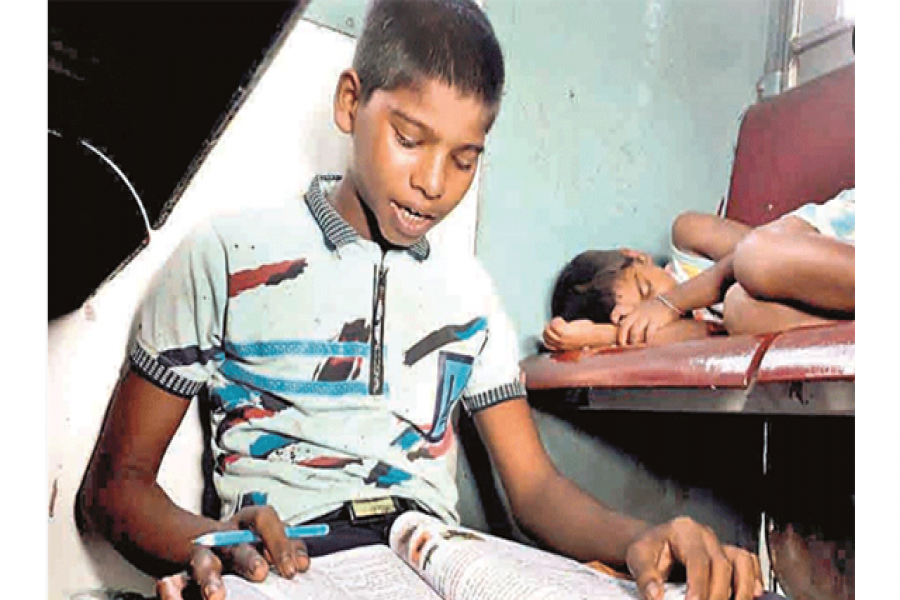 ১৪ বছর বয়সী এক ছেলে। তাকে প্রায়ই দেখা যায় লোকাল ট্রেনে মন দিয়ে পড়ছে। তার ঘর নেই। তাই ট্রেনে বসে পড়াশুনা করতে হয়ে ছেলেটিকে। ভারতের পশ্চিমবঙ্গ রাজ্যের ঘটনা এটা।