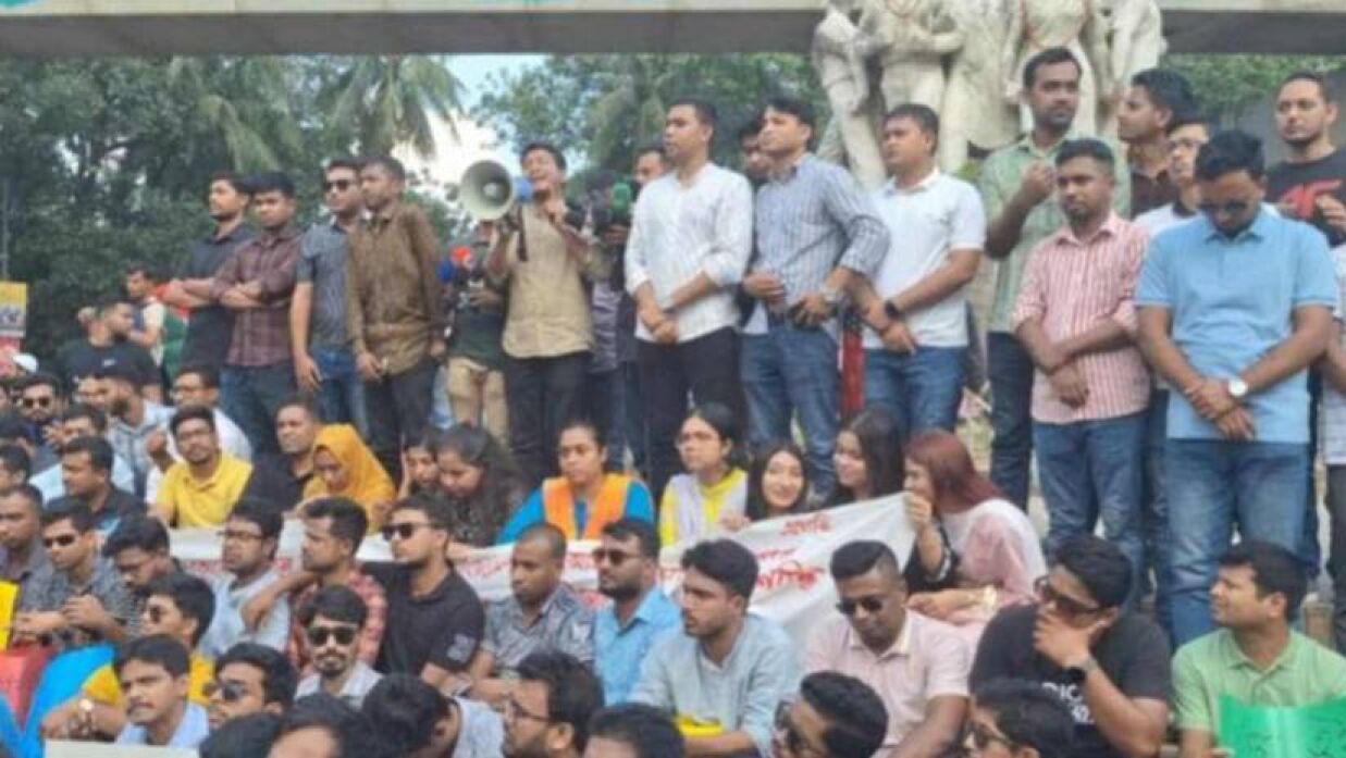 এর আগে আইন উপদেষ্টা আসিফ নজরুলকে ফ্রান্সে হেনস্তা করার প্রতিবাদ ও বিচারের দাবিসহ তিন দফা দাবিতে কেন্দ্রীয় শহীদ মিনার প্রাঙ্গণ থেকে একটি বিক্ষোভ মিছিল বের করে। সেই মিছিল পুরো ক্যাম্পাস প্রদক্ষিণ করে রাজু ভাস্কর্যের সামনে আসে।