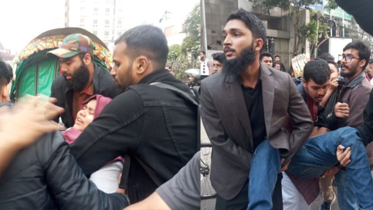 এই পক্ষটি ছাত্র অধিকার পরিষদের বলে জানা গেছে। তবে তাৎক্ষণিকভাবে তাদের নাম-পরিচয় জানা যায়নি। যাত্রাবাড়ী থেকে আসা মাসুদুর রহমান নামে এক যুবক জানান, আমি নিরাপত্তাহীনতায় ভুগছি। আমি জানি না আমার নিরাপত্তা কেমন থাকবে। তারা আমাদেরকে অফিসের ভেতর ছাত্রলীগের মতো আমাদের পিটাইছে।