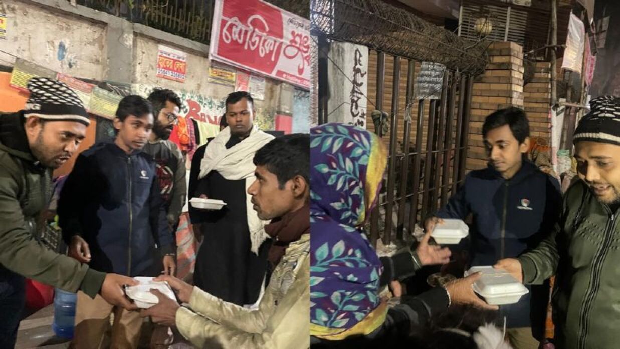 ঢাবি এলাকায় ছিন্নমূল মানুষের মাঝে ছাত্রদলের খাবার বিতরণ