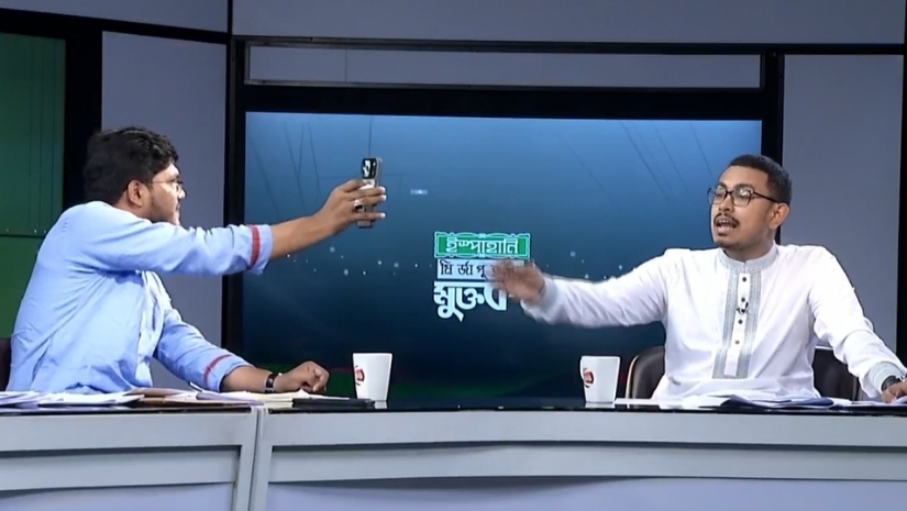 টকশোতে তর্কে জড়ান ঢাবি ছাত্রদলের যুগ্ম সাধারণ সম্পাদক আবিদুল ইসলাম খান ও ডাকসু ভিপি সাদিক কায়েমে © ভিডিও থেকে সংগৃহীত