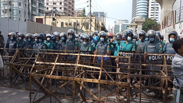 প্রধানমন্ত্রীর কার্যালয় অভিমুখে যাত্রার সময় পুলিশের সঙ্গে ধস্তাধস্তি হলে কয়েকজন আহত হন © টিডিসি ফটো