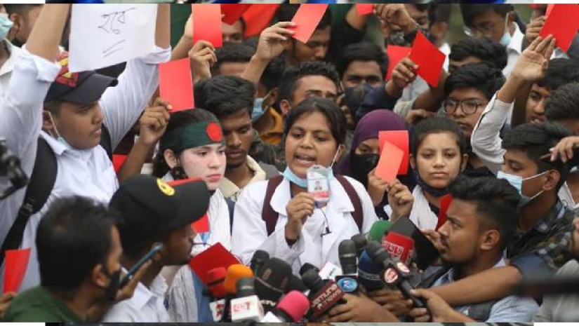 এ সময় আন্দোলনরত শিক্ষার্থীরা নিজেদের ‘রেফারি’ দাবি করে দুর্নীতির বিরুদ্ধে রুখে দাঁড়ানোর কথা জানায়।