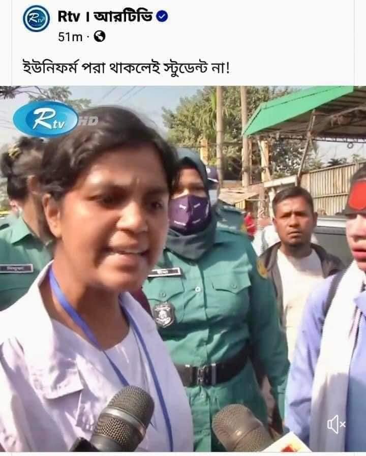আরটিভির ফেসবুক পেজে একটি ভিডিওটি আপলোডের পর পরই সেটি ছড়িয়ে যায় সামাজিক যোগাযোগমাধ্যমে। আরটিভির পোস্টটির ক্যাপশনে লেখা ছিল, ‘ইউনিফর্ম থাকলেই স্টুডেন্ট নয়!’