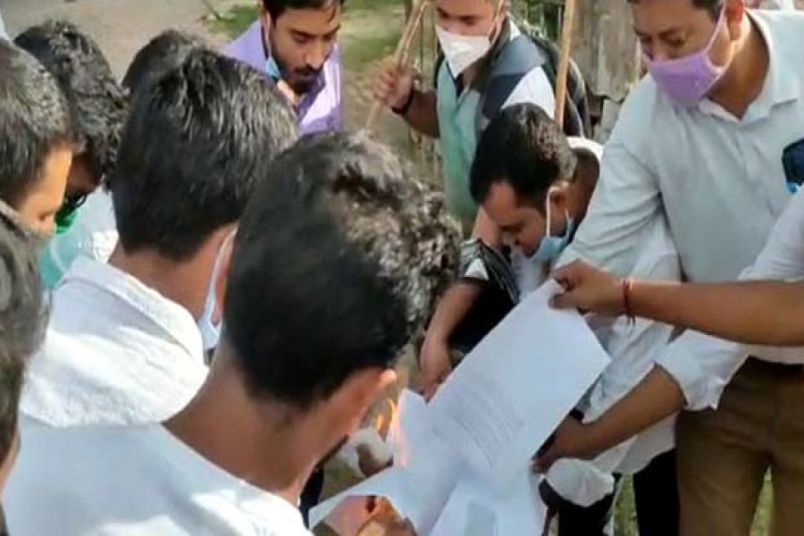 পরীক্ষা নেওয়া হবে এমন বিজ্ঞপ্তি দেওয়ার পর ত্রিপুরা বিশ্ববিদ্যালয়ে শিক্ষার্থীরা বিক্ষোভ দেখিয়েছে। এসময় বিজ্ঞপ্তির কপি পুড়িয়ে কর্তৃপক্ষের এ সিদ্ধান্তের প্রতিবাদ জানিয়েছে তারা। আজ শুক্রবার (১০ জুলাই) বিকেলে রাজধানীর আগরতলা গান্ধীগ্রাম এলাকার ত্রিপুরা বিশ্ববিদ্যালয়ের স্মৃতি অফিসের সামনে বিজ্ঞপ্তি পুড়িয়ে প্রতিবাদ জানায় বামফ্রন্ট সমর্থিত ছাত্র সংগঠন এস এফ আই এবং টি এস এফ ছাত্র সংগঠনের সদস্যরা।