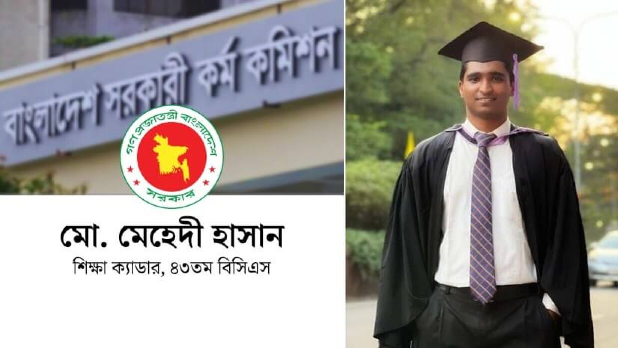 ৪৩তম বিসিএসে শিক্ষা ক্যাডারে (রসায়ন) সুপারিশপ্রাপ্ত হয়েছেন ঢাকা বিশ্ববিদ্যালয়ের (ঢাবি) শিক্ষার্থী মো. মেহেদী হাসান। মধ্যবিত্ত পরিবারের সন্তান তিনি। ৪১তম বিসিএসে প্রথমবারের মতো অংশগ্রহণ করেন। তবে সেবার প্রিলিতেই বাদ পড়েছিলেন। অবশেষে ৪৩তম বিসিএসে ক্যাডার হলেন তিনি।