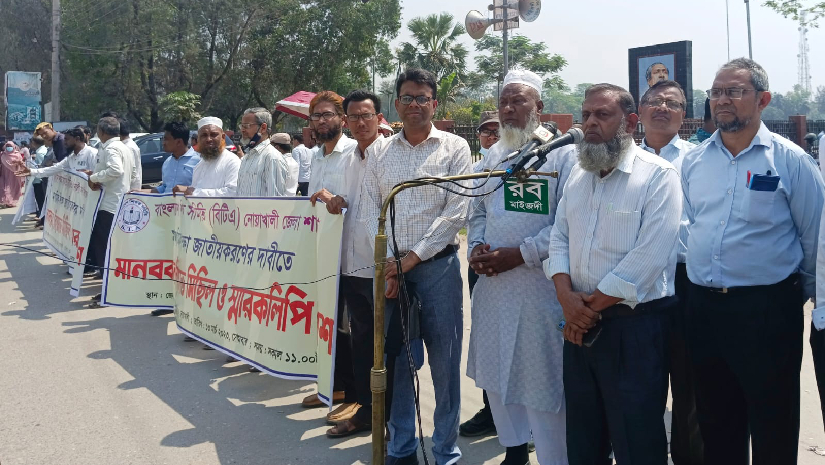 মাধ্যমিক শিক্ষা জাতীয়করণের দাবিতে নোয়াখালীতে মানববন্ধন