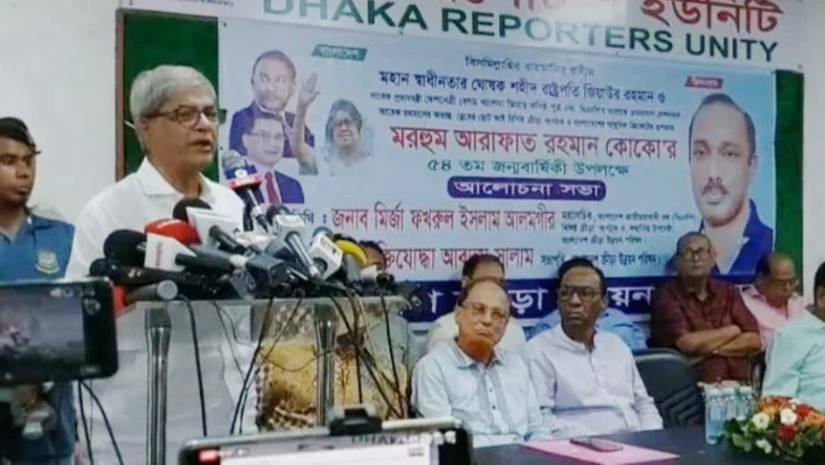 আজ রবিবার দুপুরে (১৩ আগস্ট) ঢাকা রিপোর্টার্স ইউনিটিতে এক আলোচনা সভায় প্রধান অতিথির বক্তব্যে মির্জা ফখরুল এ কথা বলেন। বিএনপির প্রতিষ্ঠাতা সাবেক প্রেসিডেন্ট জিয়াউর রহমান ও দেশের প্রথম নারী প্রধানমন্ত্রী বেগম খালেদা জিয়ার কনিষ্ঠ সন্তান মরহুম আরাফাত রহমান কোকোর ৫৪তম জন্মবার্ষিকী উপলক্ষে এই আলোচনা সভার আয়োজন করে বাংলাদেশ ক্রীড়া উন্নয়ন পরিষদ। এতে সভাপতিত্ব করেন ঢাকা মহানগর দক্ষিণ বিএনপির আহ্বায়ক বীর মুক্তিযোদ্ধা আব্দুস সালাম।