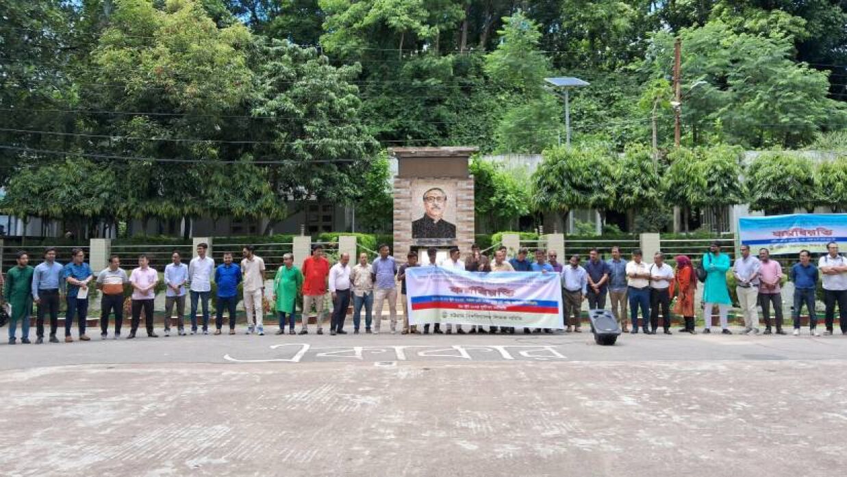 পেনশন সংক্রান্ত বৈষম্যমূলক প্রজ্ঞাপন প্রত্যাহার, প্রতিশ্রুত সুপার গ্রেডে বিশ্ববিদ্যালয়ের শিক্ষকদের অন্তর্ভুক্তিকরণ ও শিক্ষকদের জন্য স্বতন্ত্র বেতন স্কেল প্রবর্তনের দাবিতে বাংলাদেশ বিশ্ববিদ্যালয় শিক্ষক সমিতি ফেডারেশনের আহ্বানে এ কর্মসূচি পালন করা হয়।
