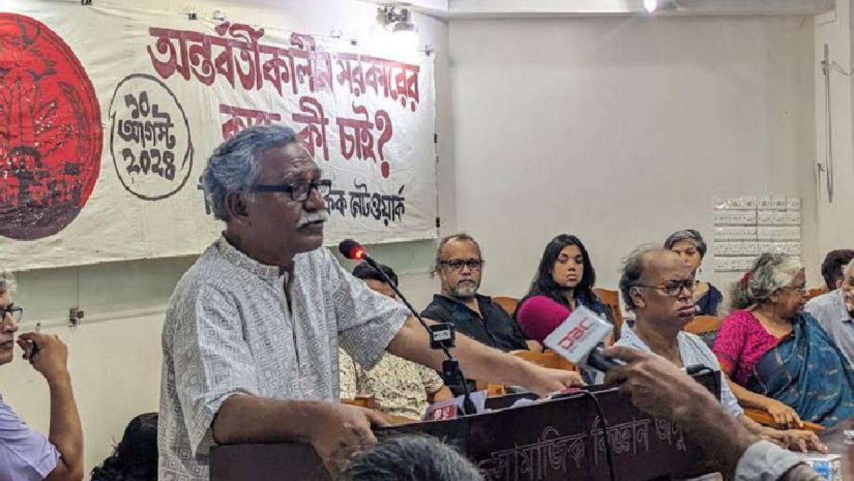 অধ্যাপক আনু মুহাম্মদ বলেন, অভ্যন্তরীণ সরকারের কাছে আমাদের মূল দাবি একটাই। সরকারের ঘাড়টা জনগণের দিকে ফেরাতে হবে। তাহলে সব দাবি পালিত হবে। সংবিধানে বড় পরিবর্তন আনতে হবে। কারণ, এর অধীনে যে কেউ স্বৈরতন্ত্র হয়ে উঠবে।