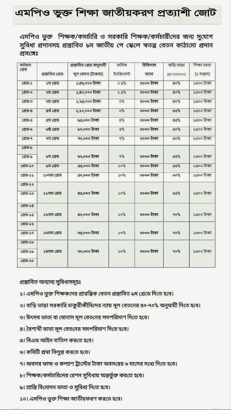 সর্বনিম্ন বেতন ৩০ হাজার করার প্রস্তাব এমপিওভুক্ত শিক্ষকদের, কোন গ্রেডে কত?
