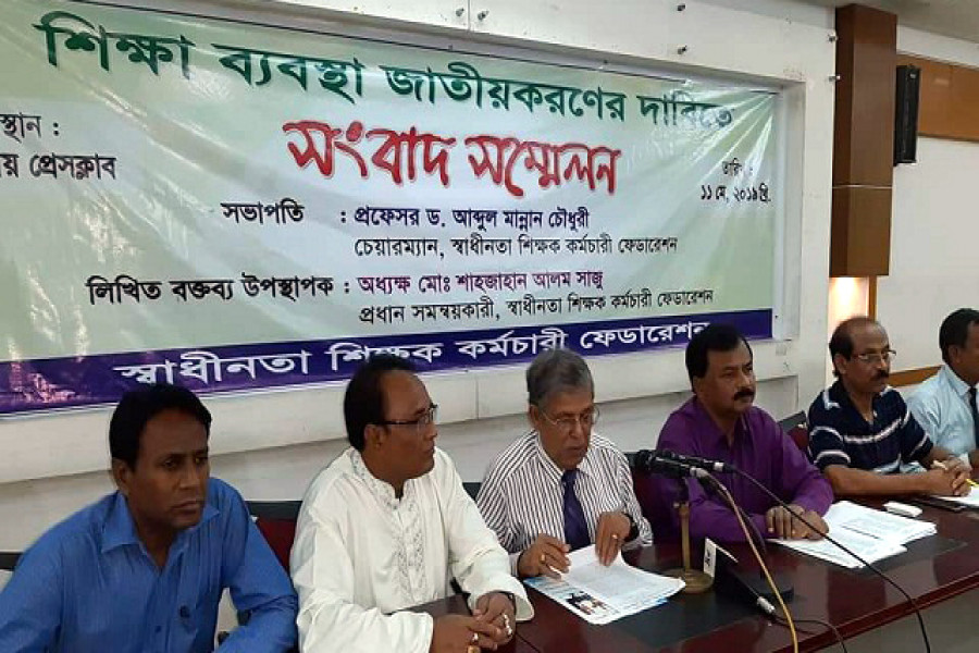 শিক্ষা ব্যবস্থা জাতীয়করণসহ ৮ দফা দাবিতে সংবাদ সম্মেলন