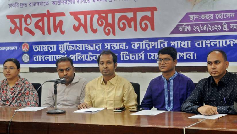 আজ বৃহস্পতিবার (২৭ এপ্রিল) জাতীয় প্রেসক্লাবের জহুর হোসেন চৌধুরী হলে বাংলাদেশ পলিটেকনিক টিচার্স ফেডারেশন এবং আমরা মুক্তিযোদ্ধার সন্তান (কারিগরি শাখা বাংলাদেশ) আয়োজিত এক সংবাদ সম্মেলনে এসব জানান শিক্ষক নেতারা।
