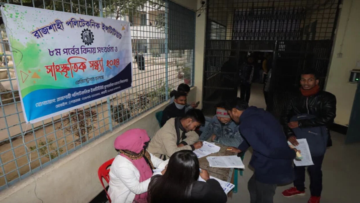 রাজশাহী পলিটেকনিক ইনস্টিটিউটে বিদায়ী ছাত্রদের প্রত্যেকের কাছ থেকে বিদায় অনুষ্ঠানের নামে ১ হাজার টাকা কেটে নিচ্ছে ছাত্রলীগ। সোমবার (১৫ জানুয়ারি) পলিটেকনিক শাখা ছাত্রলীগ ক্যাম্পাসে টেবিল পেতে বসে চাঁদা আদায় করে। আর তা চলবে বুধবার পর্যন্ত। বিদায় নেয়া এক হাজার শিক্ষার্থীর কাছ থেকে এভাবে ১০ লাখ টাকা আদায়ের পরিকল্পনা নিয়েছে তারা।
