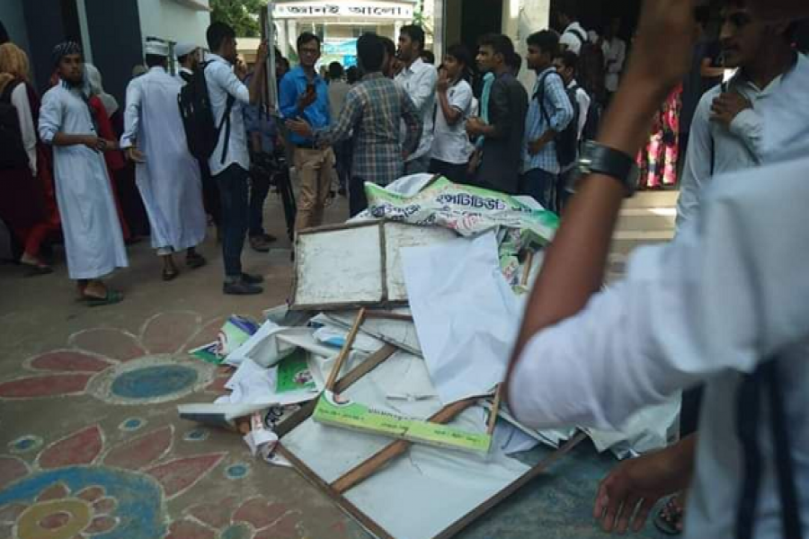 ছাত্রলীগের সকল ব্যানার ফেস্টুন সরিয়ে ফেললো বিক্ষুব্ধ শিক্ষার্থীরা