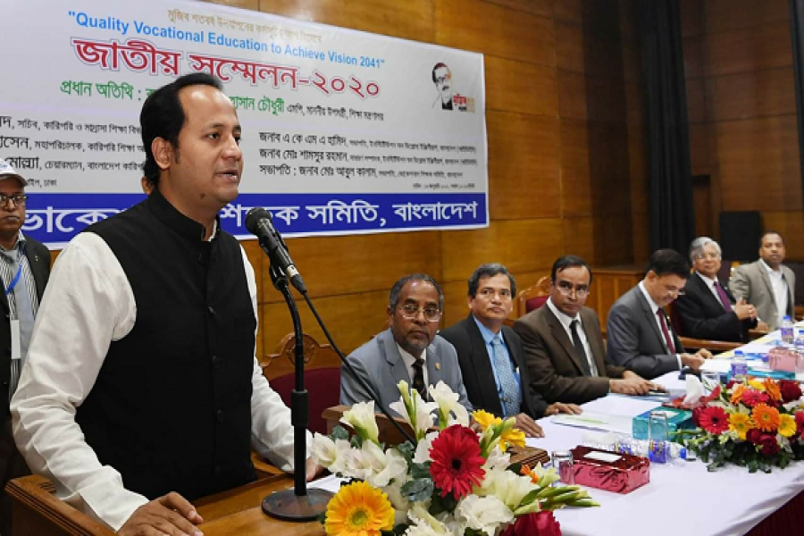 বৃহস্পতিবার (১৬ জানুয়ারি) ভোকেশনাল শিক্ষক সমিতি, বাংলাদেশ- এর জাতীয় সম্মেলন উপলক্ষে আয়োজিত অনুষ্ঠানে প্রধান অতিথির বক্তৃতায় এসব বলেন তিনি। রাজধানীর ডিপ্লোমা ইঞ্জিনিয়ারস ইন্সটিটিউট (আইডিইবি) ভবনে এ অনুষ্ঠানের আয়োজন করা হয়।