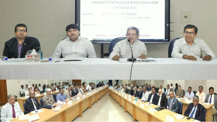 বেসরকারি বিশ্ববিদ্যালয়ের একাডেমিক এবং প্রশাসনিক স্বচ্ছতা ও গতিশীলতা আনয়নে উপাচার্যদের সঙ্গে এক মতবিমিনয় সভা করেছে বাংলাদেশ বিশ্ববিদ্যালয় মঞ্জুরী কমিশনের (ইউজিসি)। সভায় বেসরকারি বিশ্ববিদ্যালয়ের উপাচার্যদের বিদ্যমান আইনকানুন মেনে বিশ্ববিদ্যালয় পরিচালনার আহ্বান জানিয়েছেন ইউজিসির চেয়ারম্যান প্রফেসর ড. কাজী শহীদুল্লাহ।