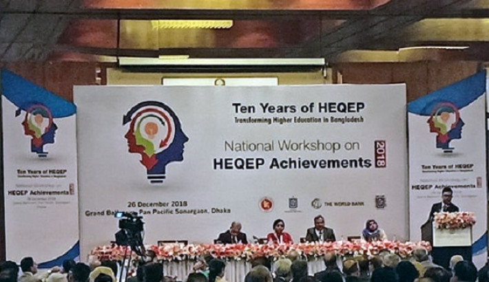 ১০ বছরে হেকেপ প্রকল্পের (হায়ার এডুকেশন কোয়ালিটি এনহ্যান্সমেন্ট প্রজেক্ট) অর্জন নিয়ে জাতীয় কর্মশালা শুরু হয়েছে। বুধবার সকালে রাজধানীর একটি হোটেলে দিনব্যাপী প্রধান অতিথি হিসেবে উপস্থিত থেকে এ কর্মশালার উদ্বোধন করেন শিক্ষা মন্ত্রণালয়ের মাধ্যমিক ও উচ্চ শিক্ষা বিভাগের সচিব মোঃ সোহরাব হোসাইন। এতে বাংলাদেশ বিশ্ববিদ্যালয় মঞ্জুরী কমিশনের (ইউজিসি) চেয়ারম্যান অধ্যাপক আব্দুল মান্নান সভাপতিত্ব করেন।