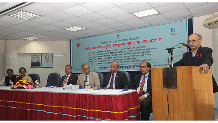 বার্ষিক কর্মসম্পাদন চুক্তি ব্যবস্থাপনা পদ্ধতির উপর দু’দিনব্যাপী এক কর্মশালা আজ রোববারে বাংলাদেশ বিশ্ববিদ্যালয় মঞ্জুরী কমিশনে শুরু হয়েছে। বিশ্ববিদ্যালয়সমূহের কর্মকাণ্ড স্বচ্ছ ও গতিশীল করার জন্য ইউজিসি এই কর্মশালার আয়োজন করে। প্রফেসর আবদুল মান্নান, চেয়ারম্যান, ইউজিসি উদ্বোধনী অনুষ্ঠানে প্রধান অতিথি হিসেবে উপস্থিত ছিলেন।