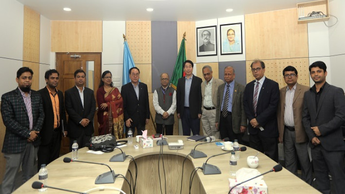 কোরিয়া ইন্টারন্যাশনাল কো-অপারেশন এজেন্সি (কইকা) এর দুই সদস্যের এক প্রতিনিধি দল বাংলাদেশ বিশ্ববিদ্যালয় মঞ্জুরী কমিশনের (ইউজিসি) চেয়ারম্যান অধ্যাপক আবদুল মান্নান- এর সাথে ইউজিসিতে এক সৌজন্য সাক্ষাৎ করেন। আজ মঙ্গলবার এই সাক্ষাৎ অনুষ্ঠিত হয়। প্রতিনিধি দলের নেতৃত্ব দেন কোরিয়ার স্যাংমিয়াং বিশ্ববিদ্যালয়ের অধ্যাপক ড. কিয়াং উল বে।