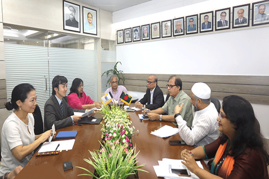 জাপান ইন্টারন্যাশনাল কোঅপারেশন এজেন্সি (জাইকা) এর তিন সদস্যের এক প্রতিনিধি দল বাংলাদেশ বিশ্ববিদ্যালয় মঞ্জুরী কমিশনের ভারপ্রাপ্ত চেয়ারম্যান প্রফেসর ড. মোহাম্মদ ইউসুফ আলী মোল্লা’র সঙ্গে ইউজিসিতে আজ বুধবার সৌজন্য সাক্ষাৎ করেন। জাইকা, বাংলাদেশ এর সিনিয়র রিপ্রেজেনটেটিভ (আরবান ডেভেলপমেন্ট) মি. কজি মটোমরি প্রতিনিধি দলের নেতৃত্ব দেন।