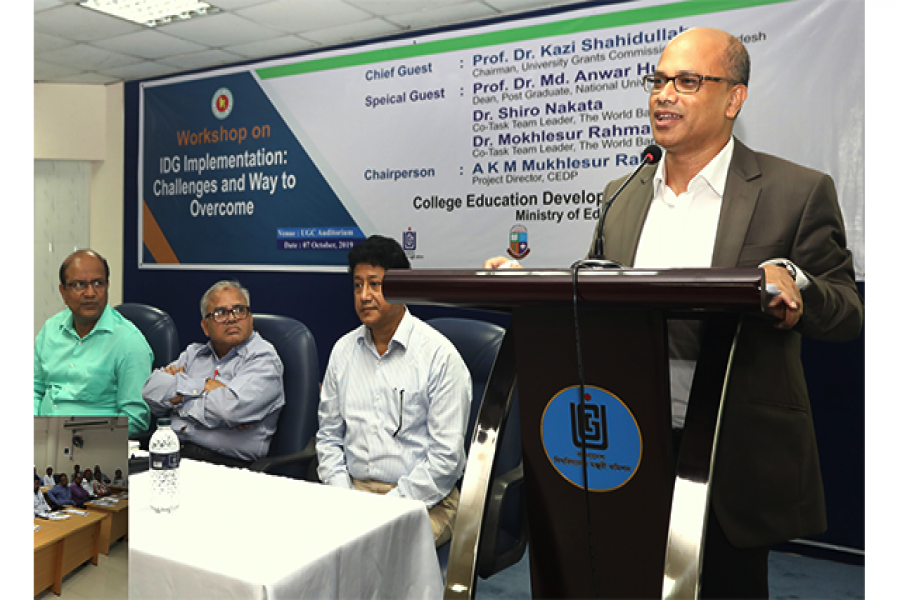 সোমবার (৭ অক্টোবর) ইউজিসিতে আয়োজিত কলেজ শিক্ষা উন্নয়ন প্রকল্পের (সিইডিপি) আইডিজি বাস্তবায়ন, সমস্যা ও উত্তরণের উপায় শীর্ষক এক কর্মশালায় প্রধান অতিথির ভাষণে একথা বলেন তিনি।