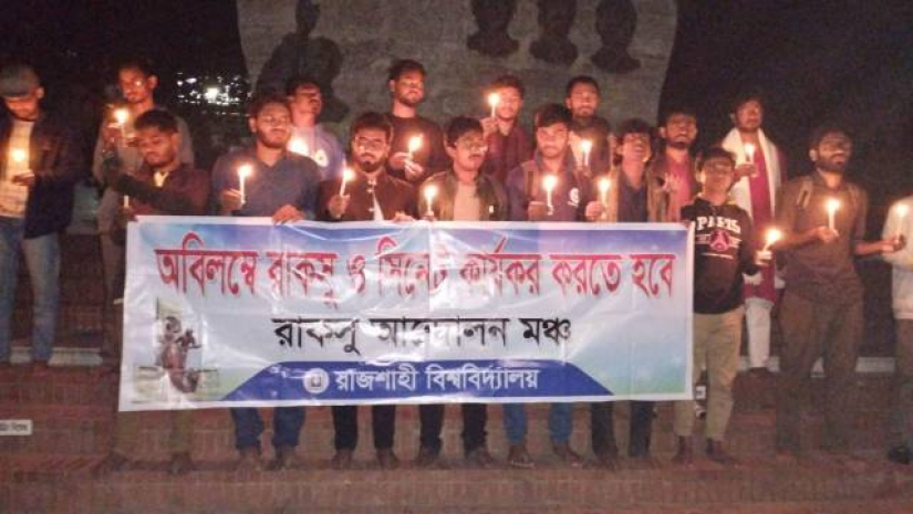 রাকসু ও সিনেট কার্যকরের দাবিতে রাবিতে মোমবাতি প্রজ্জ্বলন