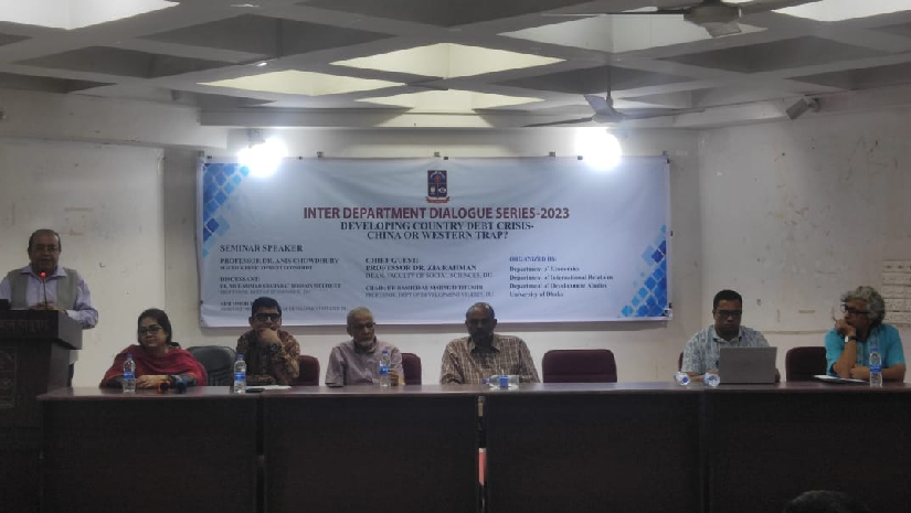 ঋণ বাংলাদেশের অর্থনীতিতে বড় চাপ সৃষ্টি করেছে বলে মন্তব্য করেছেন উন্নয়ন ও অধ্যয়ন বিভাগের চেয়ারম্যান রাশেদ আল মাহমুদ তিতুমীর। সোমবার (৬ মার্চ ) বিকেলে ঢাকা বিশ্ববিদ্যালয়ের সামাজিক বিজ্ঞান অনুষদস্থ প্রফেসর ড. মোজাফফর আহমেদ চৌধুরী অডিটোরিয়ামে ‘উন্নয়নশীল দেশে ঋণ সংকট - চীন বা পশ্চিমা ফাঁদ!’ শীর্ষক এই সেমিনারে তিনি একথা বলেন।