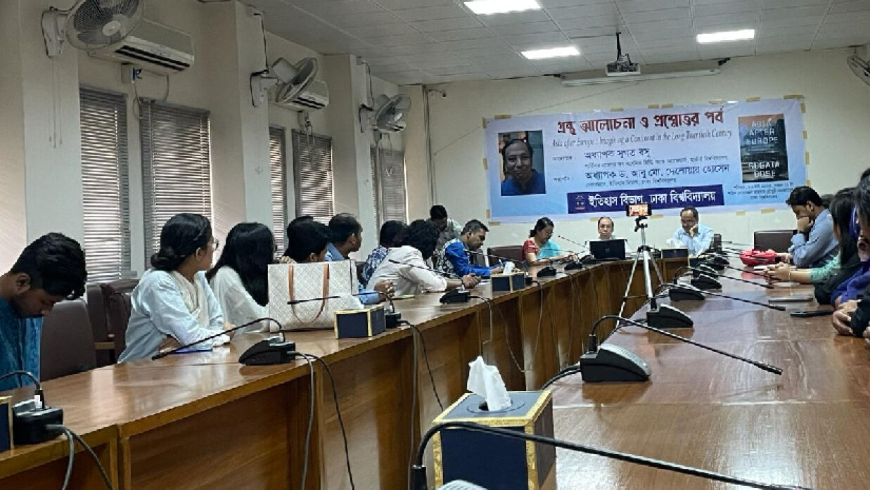 ঢাকা বিশ্ববিদ্যালয় (ঢাবি) ইতিহাস বিভাগের উদ্যোগে হার্ভার্ড বিশ্ববিদ্যালয়ের অধ্যাপক সুগত বসু-র রচিত এশিয়া আফটার ইউরোপ: ইম্যাজিনিং আ কন্টিনেন্ট ইন দ্যা লং টোয়েন্টিয়েথ সেঞ্চুরি (Asia after Europe: Imagining a Continent in the Long Twentieth Century) গ্রন্থের উপর আলোচনা ও প্রশ্নোত্তর পর্ব অনুষ্ঠিত হয়েছে।