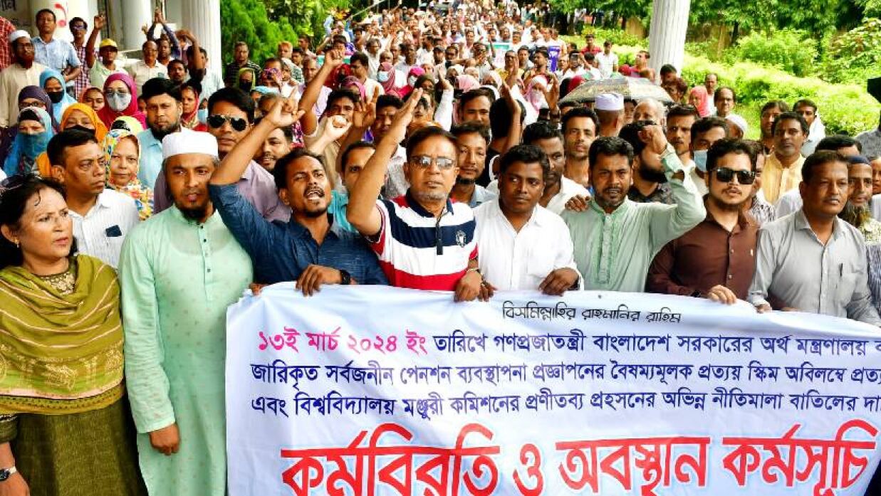 মিছিলে প্রায় ৮ শতাধিক কর্মকর্তা-কর্মচারী উপস্থিত হন। এসময় বিভিন্ন দাবি সম্বলিত প্ল্যাকার্ড উপস্থাপনসহ সর্বজনীন পেনশন বিধিমালার বৈষম্যমূলক 'প্রত্যয় স্কিম' বাতিলের স্লোগানে মুখরিত হয় বিশ্ববিদ্যালয় ক্যাম্পাস।