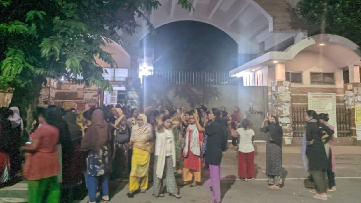 এদিকে, রাত ১১টার দিকে বিশ্ববিদ্যালয়ে রোকেয়া হলের ছাত্রীদের মেইন গেট ভেঙে সামনের রাস্তায় অবস্থান করতে দেখা গেছে। পরে সেখানে তাদের নানা ধরনের স্লোগান দিতে দেখা গেছে।