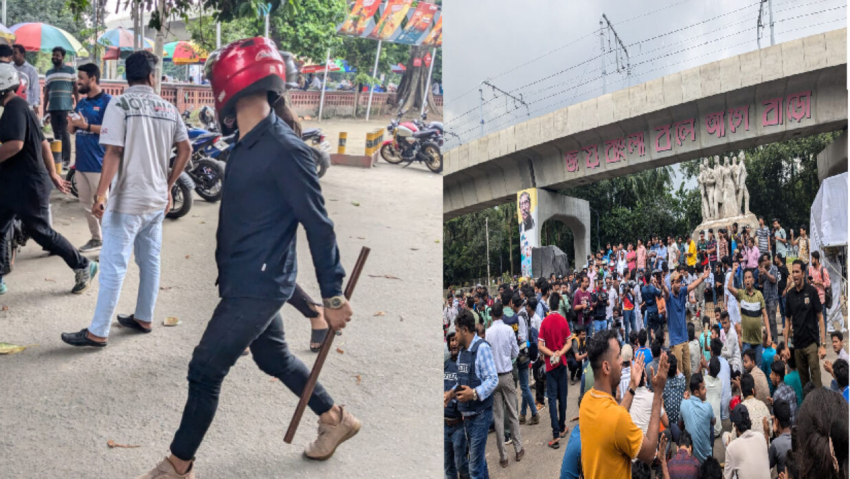 কেন্দ্রীয় ছাত্রলীগের পূর্ব ঘোষিত বিক্ষোভ সমাবেশে অংশ নিতে ঢাকা বিশ্ববিদ্যালয় ক্যাম্পাসে জড়ো হচ্ছেন ঢাকা মহানগর দক্ষিণ ও উত্তর ছাত্রলীগের নেতাকর্মীর। এসময় অনেকের হাতে রড, স্টাম্প ও লাঠিসোটা দেখা যায়।